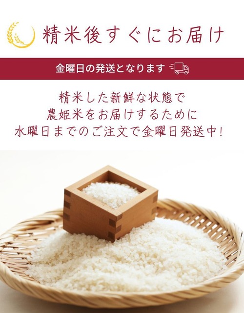 農姫米〈宮城県産ひとめぼれ〉です。「ひとめぼれ」は、宮城県の気候や風土に合わせて開発された品種で、ツヤと適度な粘り気、口当たりの良さが魅力のバランスに優れた美味しいお米です。ぜひ一度、ご賞味下さい! ※精米限定の商品です ※沖縄、離島へのお届けは不可 ※玄米、精米をお選び